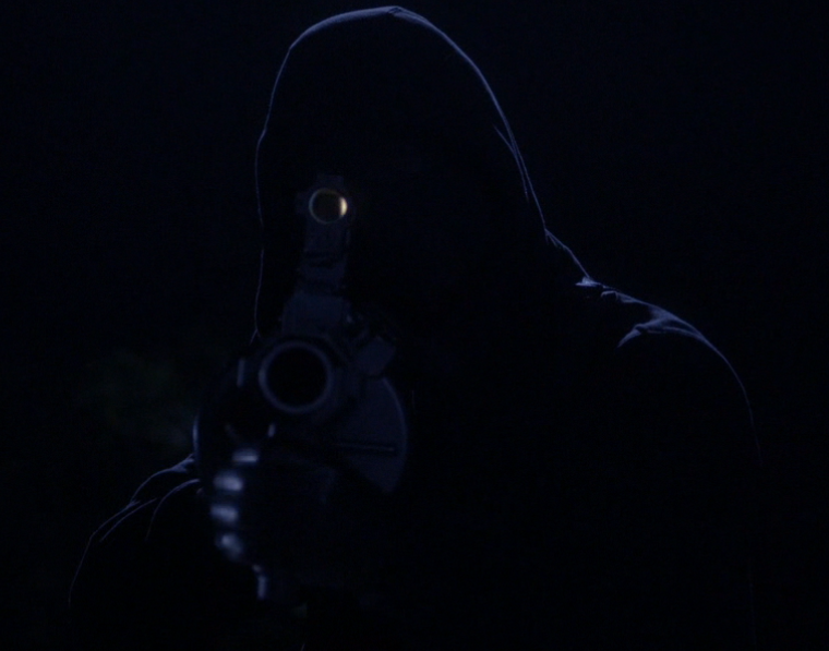 The vehicle starts to move all over the god damn place!! The girls are throw all over the fucking place like it's a god damn or... you know what, never mind. The car finally stops moving and Aria hilariously tells us that she totally pee'd her pants!! HAHAHA ARIA!!! The lights to the van goes out and the Liar's hears the driving guard dude person thing getting his life choked out of him!! Something starts to crawl to the back of the van, and they're attempting to unlock the doors. Spencer orders the girls to stand back and then OMMFG THEY'RE FACE TO FACE... well technically face to mask... WITH BIG A!!! AHHHH!!! Big A holds up a gun which I totally knew what it was, and he shoots out a ball of knock out gas!!! HO-LY SHIT!!! I actually kinda predicted this scene the night before, but I thought the gas would slowly creep out from the front to the back of the car, but this is totally better!! Big A basically shot the bitches with a ball of gas!! While the girls are freaking out and all that shit, Big A jumps into the car and prepares the take the girls away...