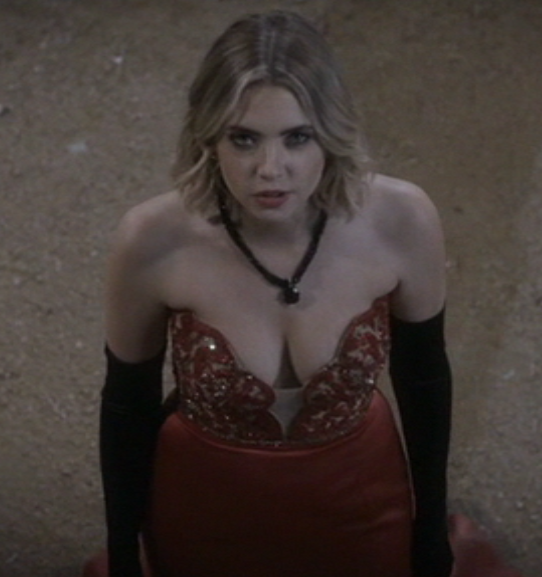 After the whole confrontation with Charles fiasco, we’re lead to a new part of the dollhouse which looks like a morgue. The Liars are all on slabs with sheets over their bodies and we’re all left wondering what the fuck did Charles do the girls? After the girls wakes up, Emily immediately looks to see if Charles performed surgery on them, which thank God he did not! While they’re left wondering what’s going on, Mona comes rolling into the morgue in a candy outfit from the hospital with aspirin and orange juice. She’s back in character of Alison DiLaurentis and the Liar’s are still wondering what the fuck is going on. I know I sure was!